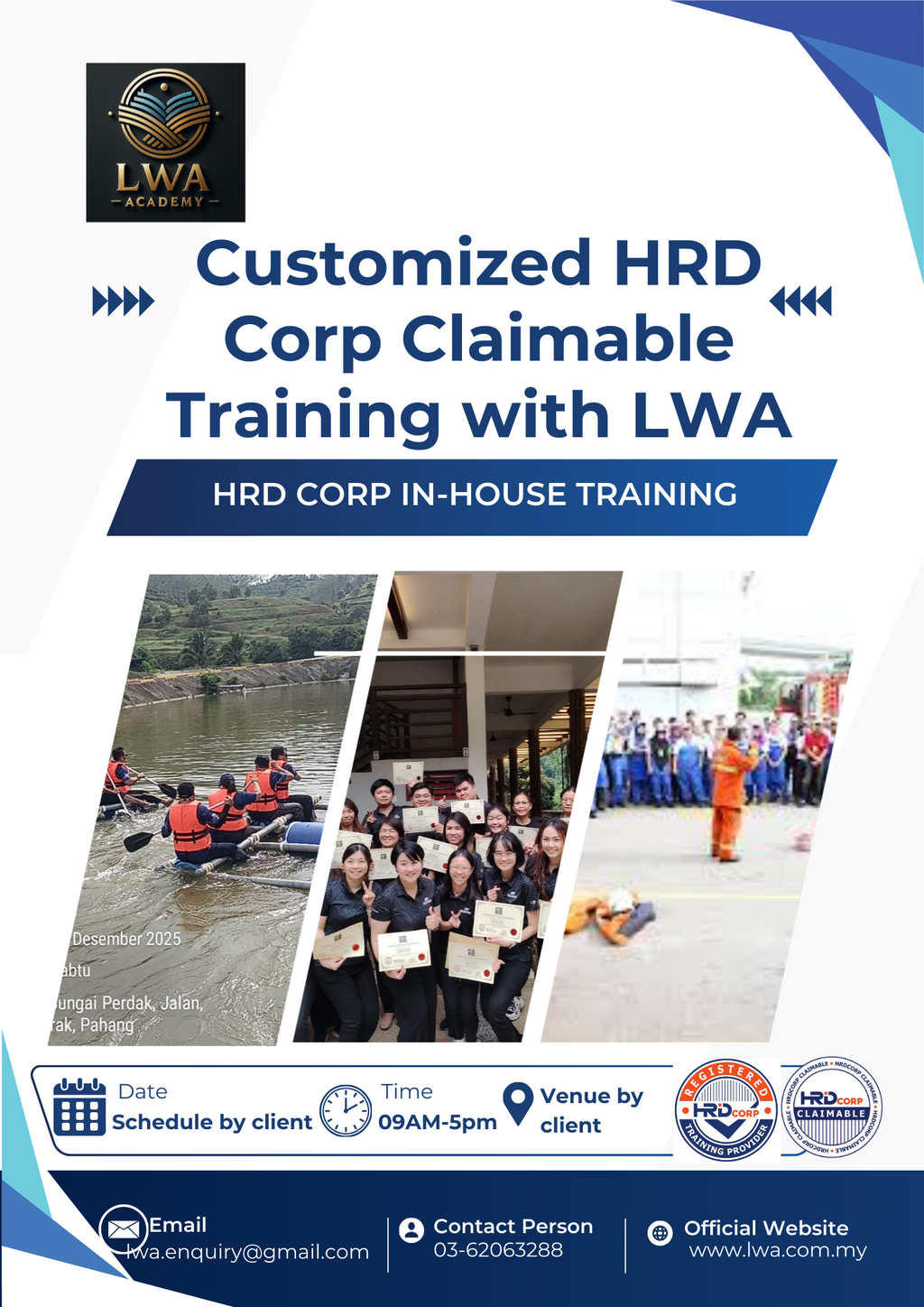 At LWA Training Centre, we offer customized training programs designed to meet your organization’s specific needs. Whether you want to improve technical skills, leadership capabilities, or workplace productivity, our HRD Corp–claimable courses provide flexible and effective learning solutions.